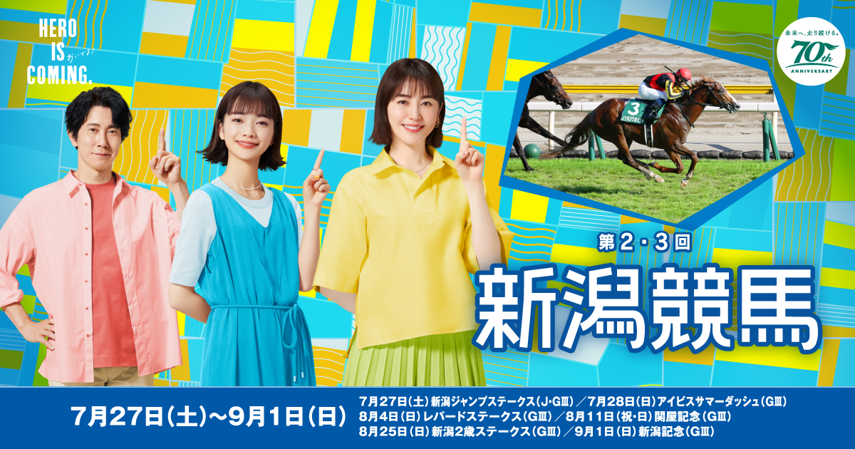 2024年第2・3回新潟競馬開催日イベント 2024年7月24日(土)~9月1日(日)新潟競馬場におけるイベント、催し、グルメを紹介。この開催の主なレースは新潟ジャンプステークス(J・GⅢ)、アイビスサマーダッシュ(GⅢ)、レパードステーク...