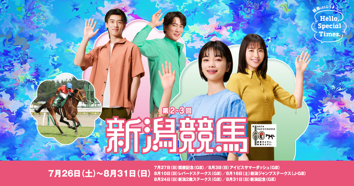 2025年第2・3回新潟競馬開催日イベント 2025年7月26日(土)~8月31日(日)新潟競馬場におけるイベント、催し、グルメを紹介。この開催の主なレースはGIIIです。