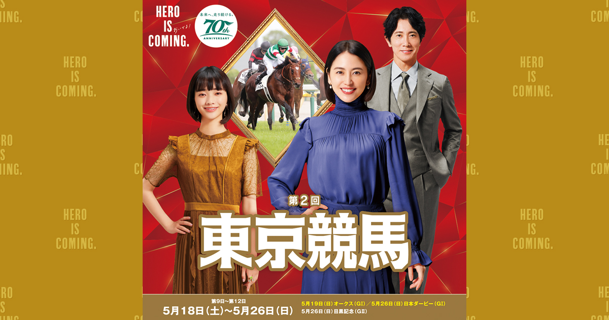 JRA年間プロモーションキャラクターの佐々木蔵之介さん、見上愛さんが日本ダービー(GI)の表彰式プレゼンターを務め、全レース終了後のレース回顧トークショーにも出演します!